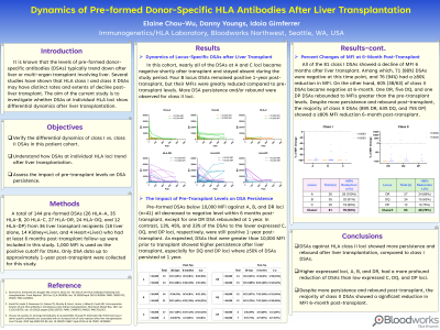 Aim: It is known that the levels of pre-formed donor-specific antibodies (DSAs) typically trend down after liver or multi-organ transplant involving liver. The aim of the current study is to investigate the differential dynamics of locus-specific DSAs after liver transplantation.