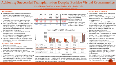 Results: Three heart transplant recipients had either DSA to HLA-C*02:02 (MFI=11,103), HLA-C*04:01 (MFI=11,889) or DQB1*03:02/DQA1*03 (MFI=16,207) of their potential donors. One renal transplant patient had DSA against HLA-C*07:02 (MFI=24,115) and the other against HLA-A*02:01 (MFI=1,695). All five patients had positive virtual, but negative physical crossmatches. Furthermore, all DSA were negative by C1q assay. Only one renal transplant recipient with DSA against HLA-C*07:02 received pre-operative IVIG and plasmapheresis to prevent unexpected complications. One of the heart transplant recipients with DSA had elevated AT1R and developed suspected rejection indicated by lower heart function which recovered quickly with treatment. DSA were still present at almost the same MFI values following adsorption with donors bearing pertinent DSA antigens which paralleled and supported the negative physical crossmatches. All patients continued to do well with no signs of rejection.