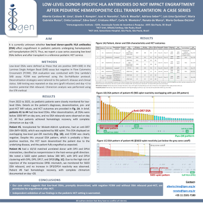 Aim: It is currently unknown whether low-level donor-specific HLA antibodies (DSA) affect engraftment in pediatric patients undergoing hematopoietic cell transplantation (HCT). Thus, we report a case series assessing low-level DSAs before and after transplant in a reference pediatric HCT service.
