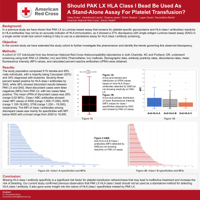 Methods: A cohort of 137 individuals from two American National Red Cross Histocompatibility laboratories in both Charlotte NC and Portland OR, underwent screening using both PAK LX (Werfen, Inc) and SAG (Thermofisher, Inc) methods. Demographic data, antibody positivity rates, discordance rates, mean fluorescence intensity (MFI) values, and calculated percent reactive antibodies (cPRA) were obtained.