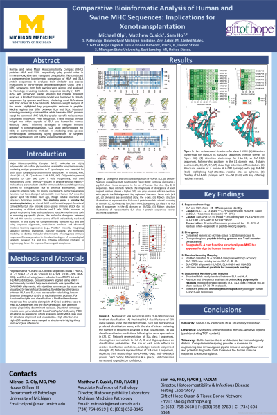 Conclusion: Our study underscores SLA as xenoantigens in rejection, showing potential HLA antibody cross-reactivity with SLA. Structural similarities exist despite differences in immune recognition sites, primarily in antigen-binding grooves. Strategic genetic modifications and selective donor matching could reduce rejection risks, advancing xenotransplantation efforts. This research highlights the potential of computational tools in identifying molecular targets to improve transplant compatibility.