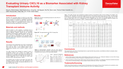 Methods: CXCL10 present in urine samples or standards bind to CXCL10 capture beads, incubated first with a biotin labeled CXCL10 detection antibody, followed by the secondary streptavidin R-phycoerythrin conjugate (SAPE), and then the plate is read on the LABScan3D™ instrument. The standard curve and CXCL10 concentrations are calculated with 4 parameter logistic (4PL) regression using MyAssay software (www.myassays.com).